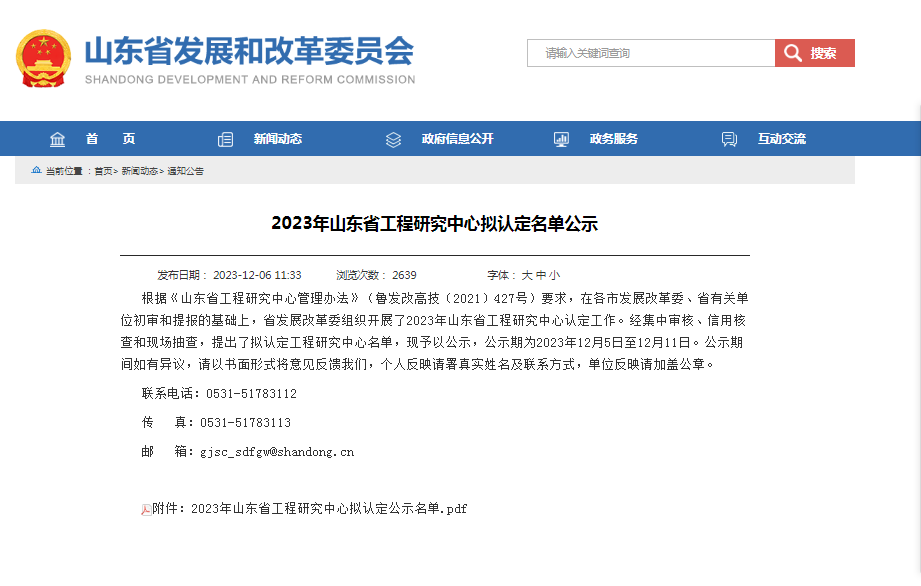 2024-01-04金科力成功入選山東省工程研究中心